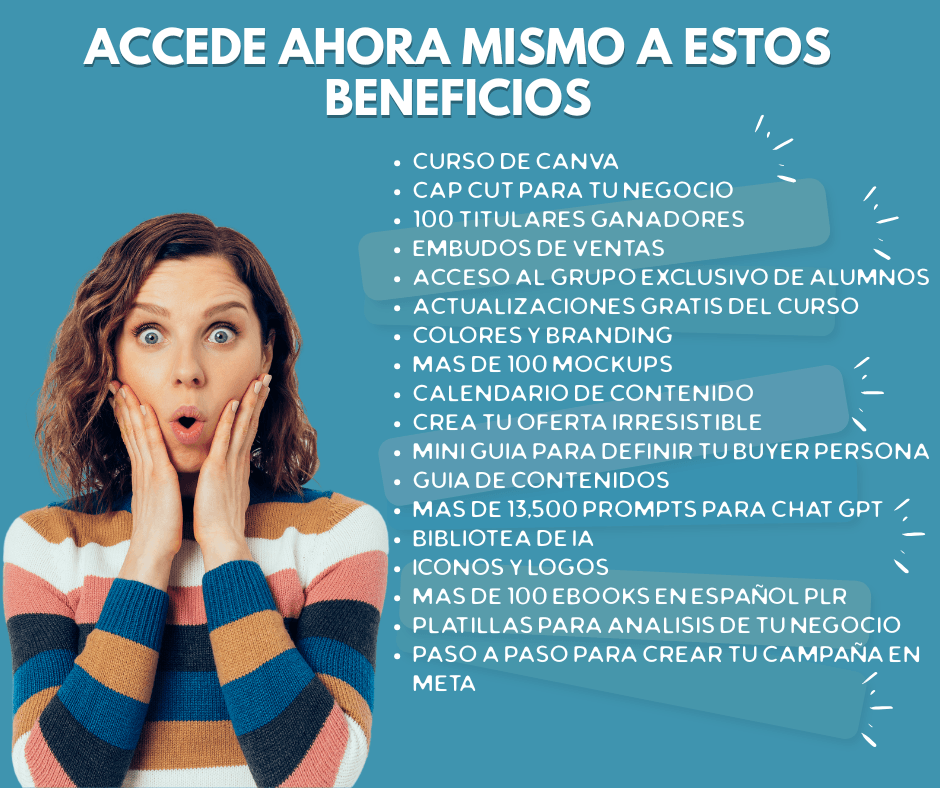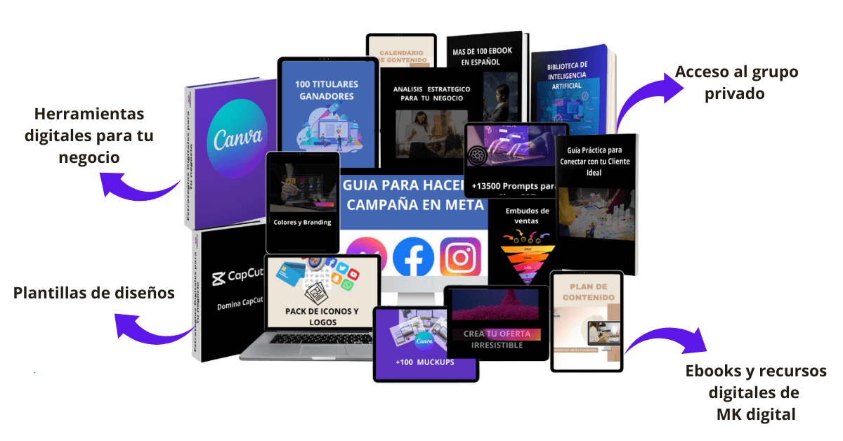 Lo emocional te motiva; los resultados te sostienen. Con este pack ahorrarás tiempo, dejarás de depender de terceros y tendrás todo lo necesario para diseñar, publicar y optimizar tus campañas con confianza. Empieza hoy y conviértete en la persona que no solo sueña su negocio, sino que lo construye, lo comunica y lo vende.